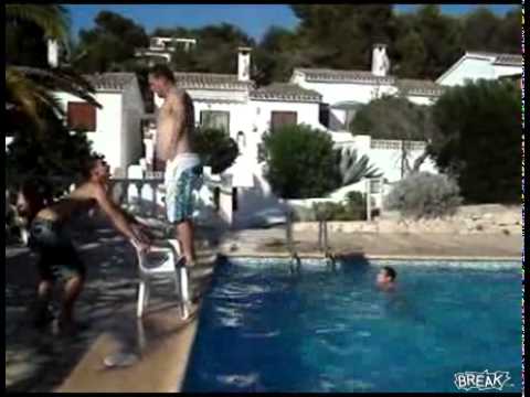 As habilidades e mergulhos nas bordas das piscinas, dão sempre a oportunidade de bons vídeos. Cá está mais um a saltar em cima de uma cadeira de plástico...